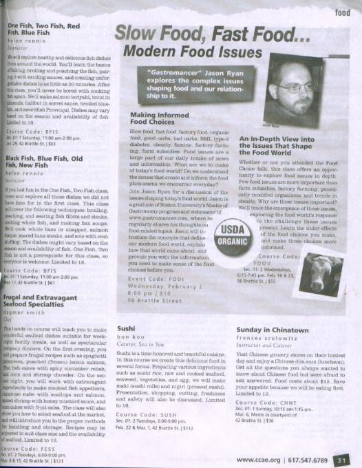 "Modern Food Issues" A Class Presented by Jason Ryan for the Cambridge Center for Adult Education